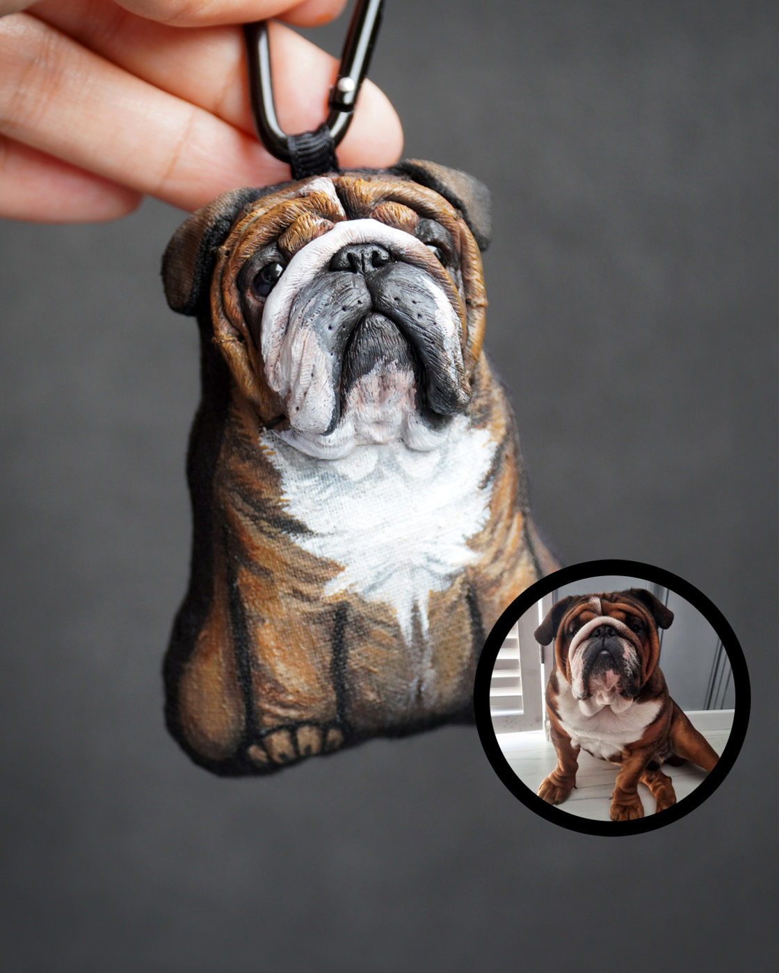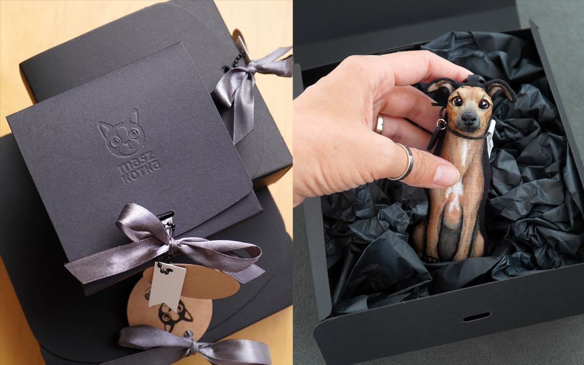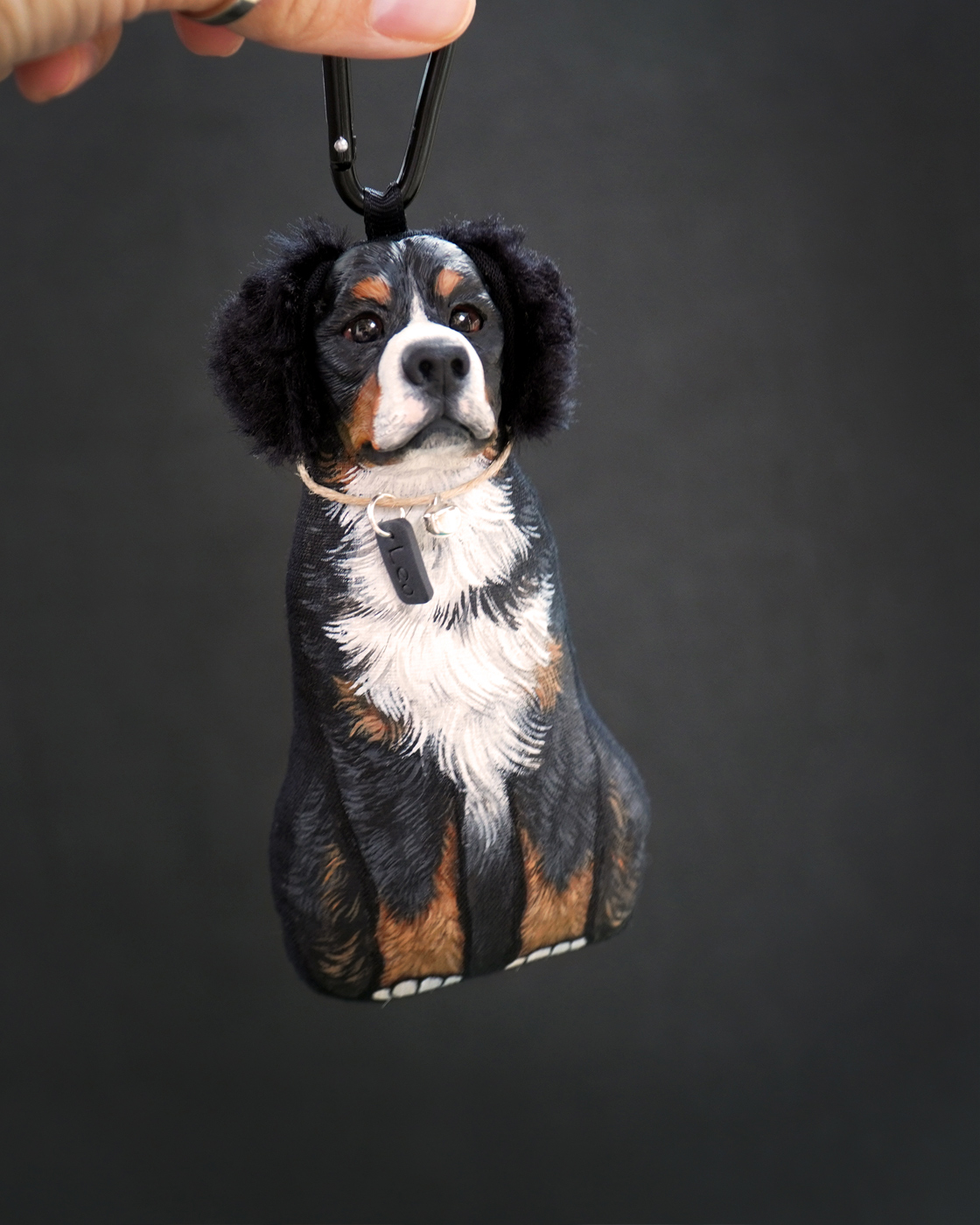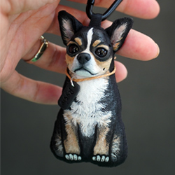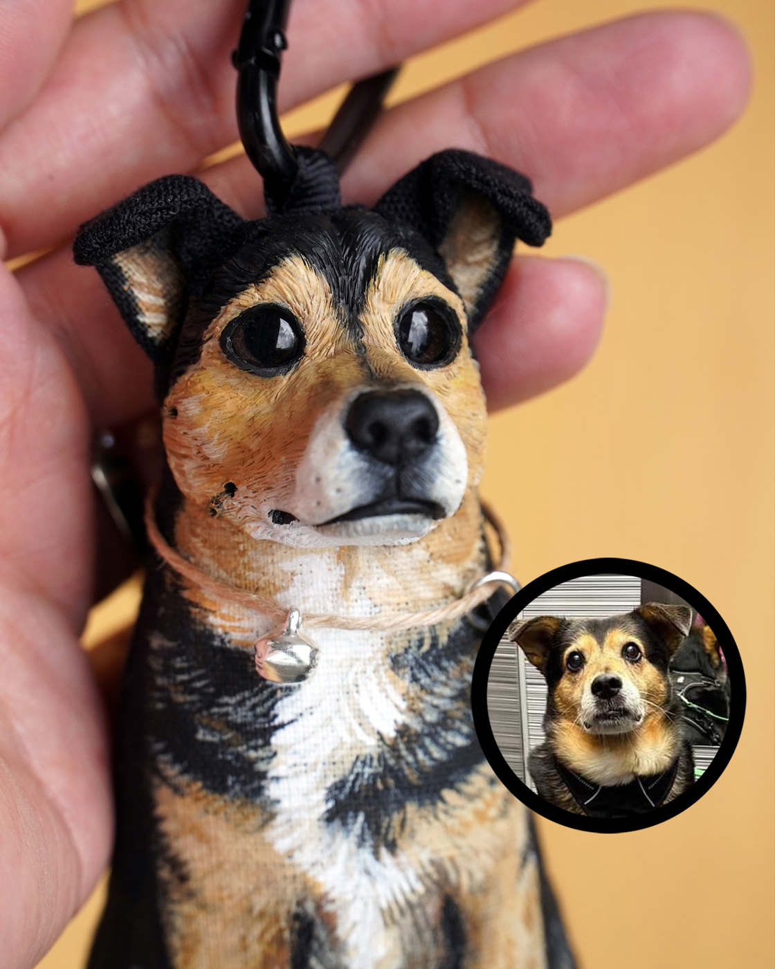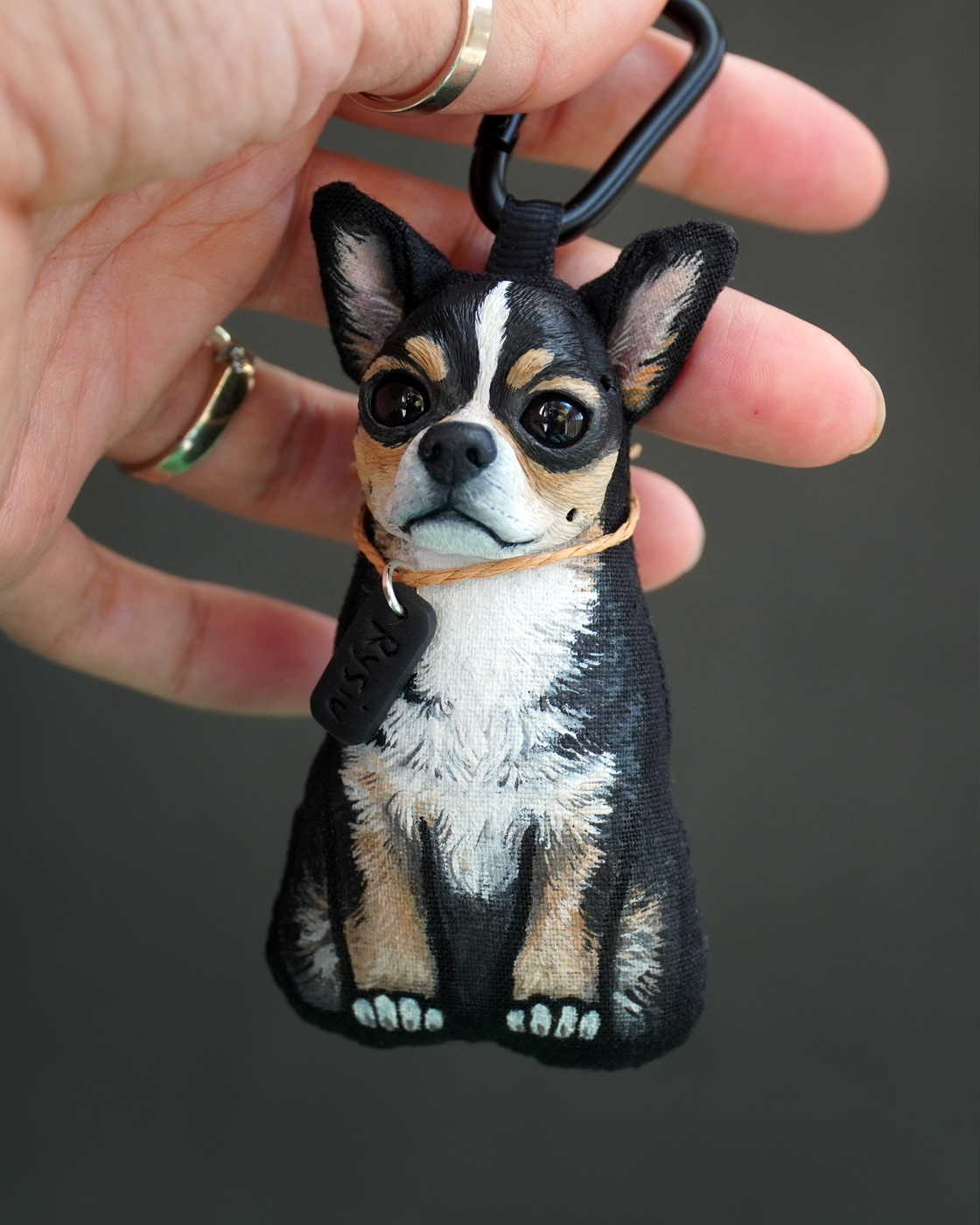 Wszystkie Pieski są personalizowane i_powstają w oparciu o wysłane do mnie zdjęcia pupila. Każdy Psiak ma mały imiennik na szyi. Oczy są wykonane ze szklanych kaboszonów. Można wybrać kolor tęczówki i_kilka dodatków jak: skrzydełka dla psich aniołów czy ukryte serduszko z sierścią zwierzaka.